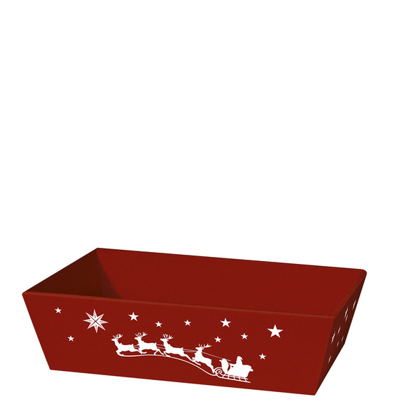 Geschenkkorb, mittel, in Rot mit festlichem Schlitten Motiv.